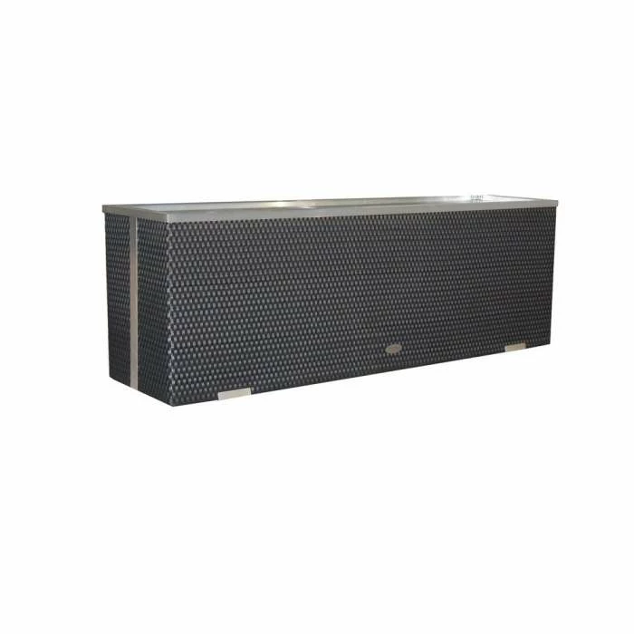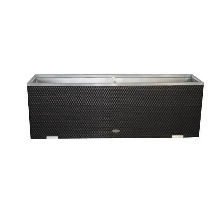 This chic polyrattan trough planter is a gorgeous addition to any garden, patio or deck. This elegant design is suitable for your home and garden or even your restaurant or business. The stylish rattan exterior is finished with polished aluminium for a sleek, modern finish. Made from high quality synthetic rattan which is resistant to mechanical stress and UV rays to ensure it keeps its colour and quality for years to come with a durable galvanised sheet metal interior. Fully waterproof and weather-resistant, this planter is perfect for using outdoors with real or artificial plants and flowers with no need for an additional insert or lining. Available in eight colours there is sure to be something to suit your needs.