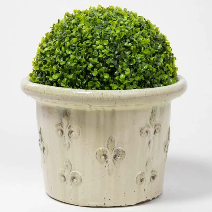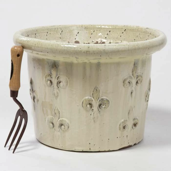 32cm Fleur De Lys Detail Ceramic Round Planter – Small