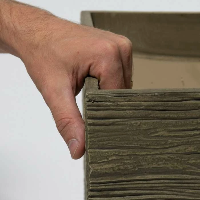 - Attractive textured wood-effect – looks especially terrific when positioned amidst foliage and other natural colourings
