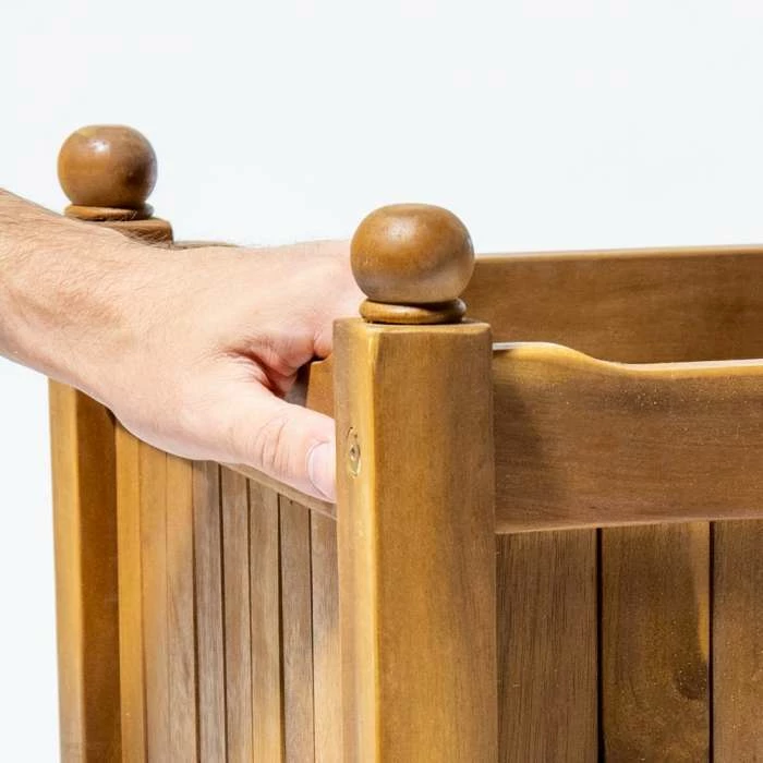 This beautiful hardwood planter can make a great addition to your garden. It’s made from 100% Acacia timber so you can be reassured knowing that you’re purchasing an ethical product created from responsibly managed woodland. You can also save money on the need to replace the planters in your garden as the strong and durable timber means it will last for years to come. It has a natural protection from a variety of weather conditions and is frost resistant, meaning you won’t have to drag it back and forward from the shed whenever winter comes around. The planter also has a slatted base which allows any excess water to easily drain away.