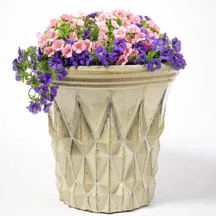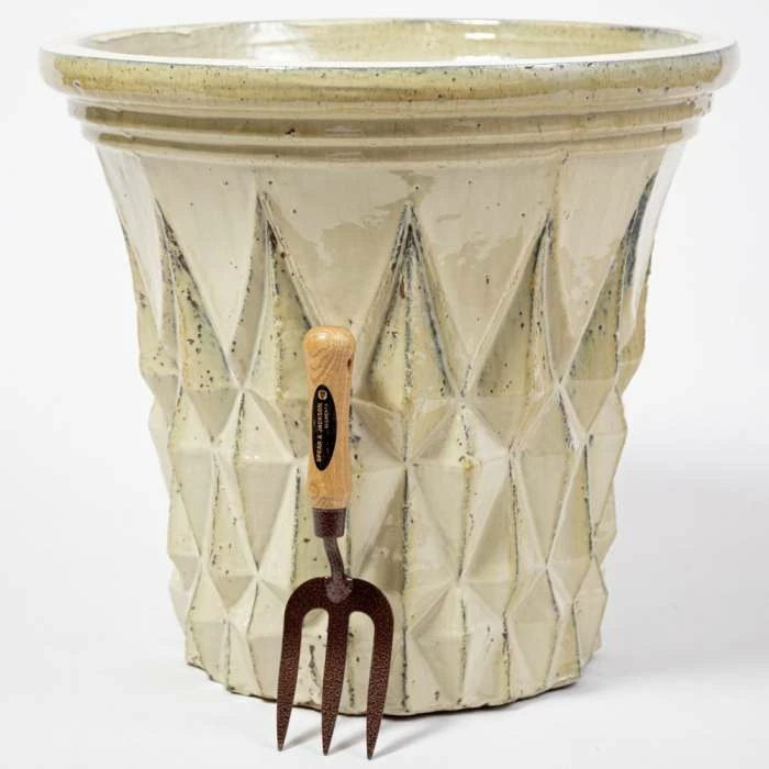 This deeply appealing glazed yellow planter is strikingly stylish and a wonderful way of showcasing your favourite plants. Its pattern helps make the planter a decorative feature in its own right, and provides a visual aesthetic that suits any garden, whether it be traditional or contemporary. The planter’s yellow finish is ideal for use with plants that share a soft colouring. Ceramics are fired in a high temperature kiln, helping to reduce porousness and vulnerability to the elements, making it a terrific material for a planter, while drainage holes help prevent overwatering.