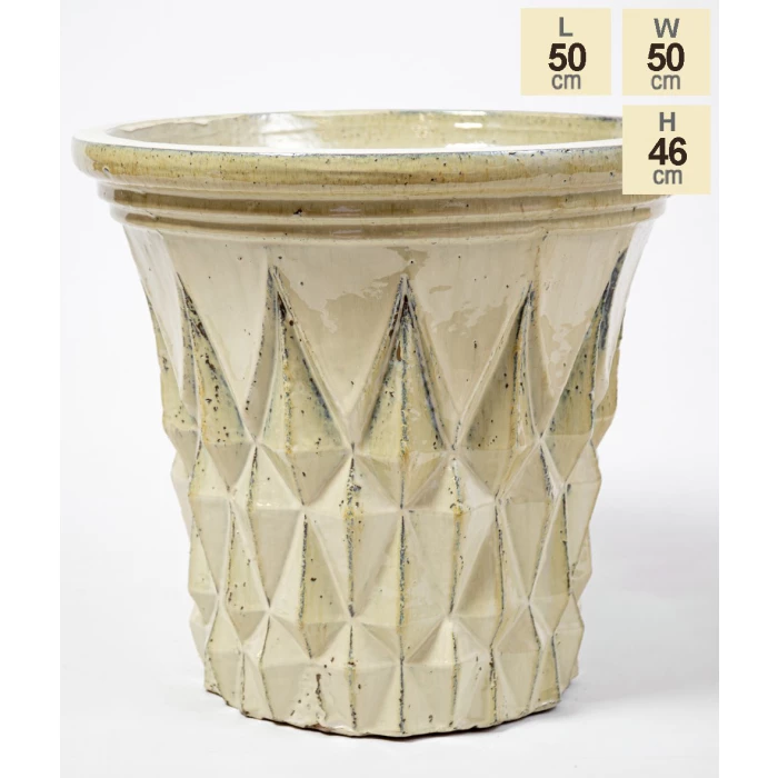 46cm Barcelona Glazed Yellow Ceramic Geometric Flared Pattern Planter