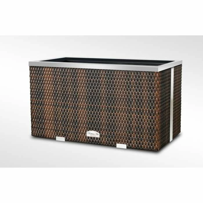 This chic polyrattan trough planter is a gorgeous addition to any garden, patio or deck. This elegant design is suitable for your home and garden or even your restaurant or business. The stylish rattan exterior is finished with polished aluminium for a sleek, modern finish. Made from high quality synthetic rattan which is resistant to mechanical stress and UV rays to ensure it keeps its colour and quality for years to come with a durable galvanised sheet metal interior. Fully waterproof and weather-resistant, this planter is perfect for using outdoors with real or artificial plants and flowers with no need for an additional insert or lining. Available in eight colours there is sure to be something to suit your needs.
