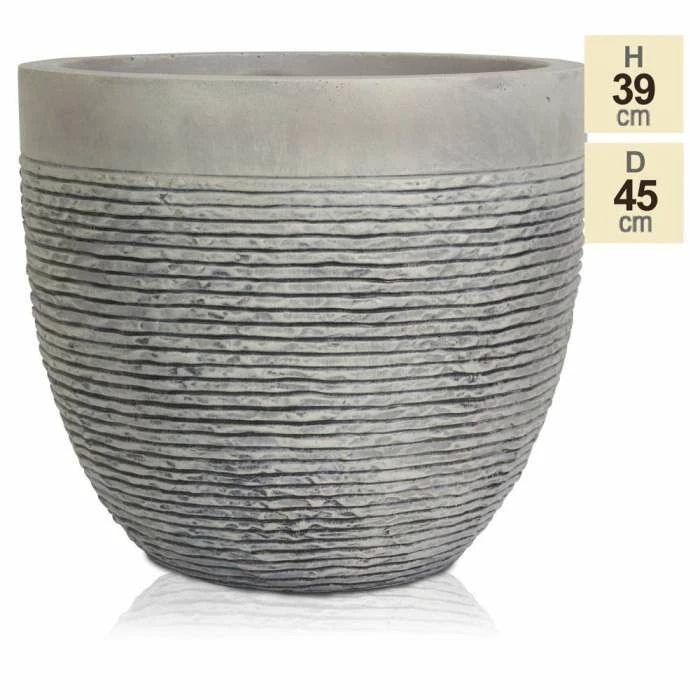 This stylish fibrecotta planter is perfect for those who want the look of real stone in their garden without the extra weight. With a realistic ribbed finish, this planter is great for making a statement in your garden while remaining durable and weather resistant.