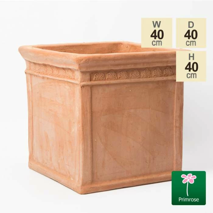 This classic terracotta cube planter is a striking addition to any garden or patio. The detailed rim design and natural earthy colour are perfect for complementing plants, flowers and topiary. A timeless and traditional looking material for pots and planters, terracotta has been a popular garden staple for hundreds (if not thousands) of years. This sturdy material is great for resisting bad weather and is also slightly porous, resulting in healthier roots and plants.