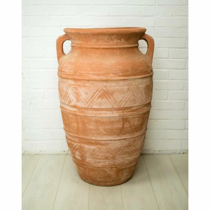 This Grecian style terracotta vase planter is a striking addition to any garden or patio. The traditional earthy colour and antique-style detailing makes it perfect for complementing plants, flowers and topiary. A timeless looking material for pots and planters, terracotta has been a popular garden staple for hundreds (if not thousands) of years. This sturdy material is great for resisting bad weather and is also slightly porous, resulting in healthier roots and plants.