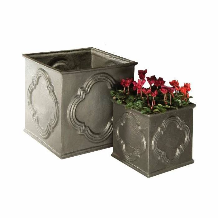 These top quality formal planters look like lead but are in fact made from fibreglass and resin, with an authentic faux lead finish.
