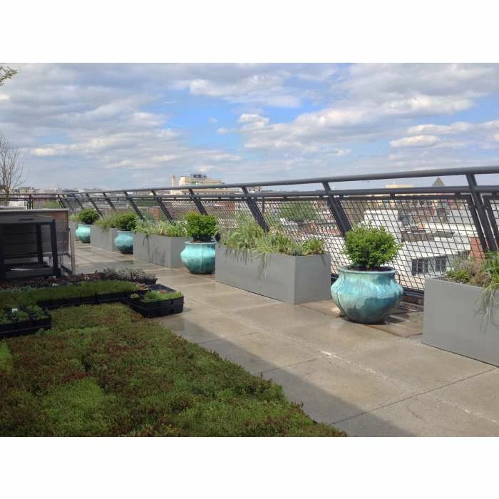 These top quality planters are made from fibreglass and resin, with an authentic aluminium finish (Also available in Faux Lead– Click Here). The geometric design suits the clean lines of contemporary architecture and planting. Frequently seen outside the best London restaurants, they also feature in some of England’s most prestigious gardens and country homes.